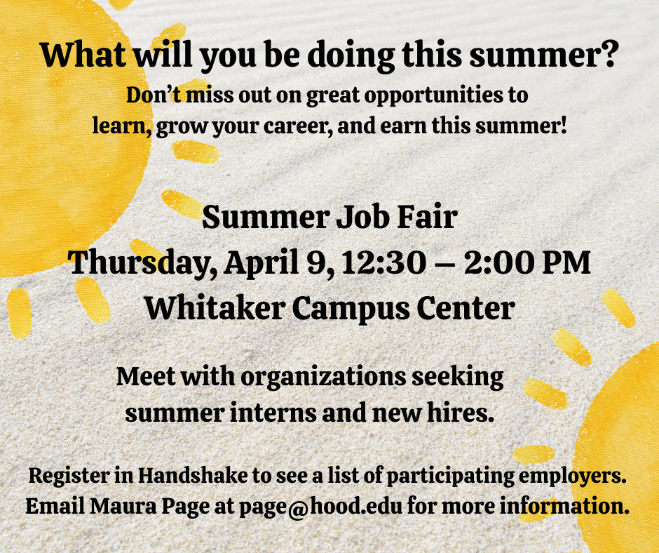 Are you looking for an internship, CPT or that next career opportunity? The Hood College Career Center is hosting the Spring Career Fair for all disciplines on March 26 from 3:00-6:00 p.m. in the Whitaker [...]